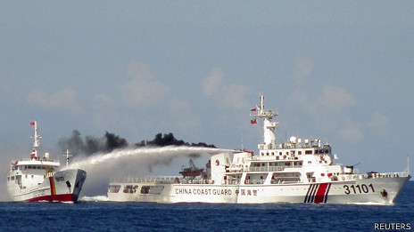 Tàu TQ bắn vòi rồng về phía tàu VN (ảnh chụp từ tàu TQ)