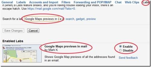 Một trong những tính năng tuyệt vời của Gmail giúp cho bạn dễ dàng hơn trong việc xác định được nơi mình đến. Để hiển thị bản đồ Google của bất kỳ địa chỉ nào được gửi đến bạn qua e-mail, bạn chọn biểu tượng bánh răng bên góc phải hộp thư – Settings – Labs – bật chế độ “Google Maps previews in mail”.