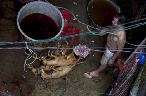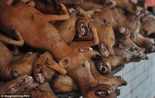 Chó to, chó nhỏ đều được giết thịt để phục vụ lễ hội. Thịt chó, lục phủ ngũ tạng của chó được vứt khắp nơi.