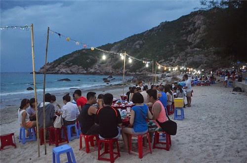 Về tối, nơi dạo chơi bên bờ biển của thị trấn Côn Sơn thành trung tâm sinh hoạt xã hội của đảo. Trời ngả mầu hồng và các xe chế biến đồ nướng tới, có ngô nướng, thịt gà và thịt heo xiên nướng. Những người bơi (chủ yếu là du khách Việt Nam mà họ tránh bãi tắm vào ban ngày) tới để để ngâm mình lúc sẩm tối. Dải đất ven biển chật ních người.