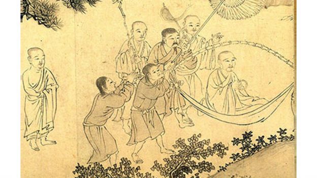 Bức tranh Phật Hoàng Trần Nhân Tông xuống núi của họa sỹ Trung Hoa