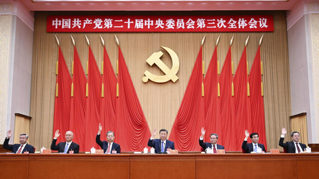 Ảnh minh họa : Hội nghị toàn thể lần thứ ba của Ban Chấp hành Trung ương Đảng Cộng sản Trung Quốc khóa XX, diễn ra từ 15-18/07/2024, tại Bắc Kinh. AP - Xie HuanchiHội nghị diễn ra vào thời điểm giới lãnh đạo Trung Quốc đang phải đối mặt với những căng thẳng thương mại với Mỹ và các hạn chế ngày càng tăng đối việc Trung Quốc tiếp cận công nghệ phương Tây, cũng như là với những thách thức lớn về kinh tế ở trong nước. Theo số liệu do Cục Thống kê Quốc gia công bố hôm nay, tăng trưởng kinh tế quý III đã chậm lại xuống mức thấp nhất 4,8% so với cùng kỳ năm rồi – giảm so với tỷ lệ 5,2% của quý trước.