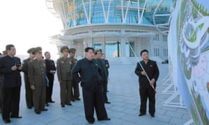 Satellite imagery suggests the complex is at least 300m long. The opening comes at a time of increased concern about the DPRK’s nuclear weapons programme. Photograph: KNS/AFP/Getty Images
