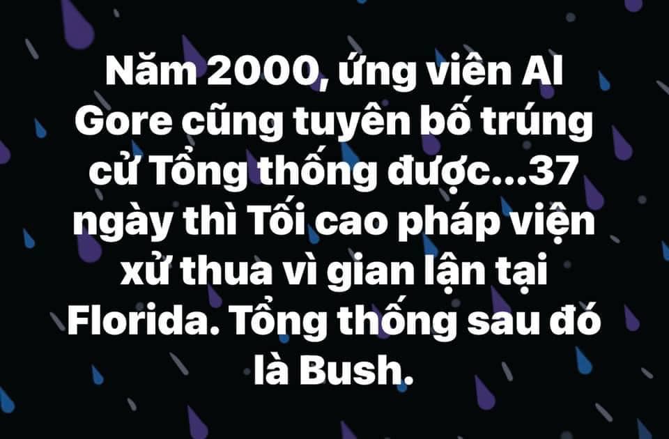 Các tiểu bang vẫn tiếp tục kiểm đếm tất cả số phiếu hợp lệ (mặc dù có thể chiến thắng đã ngã ngũ) và sẽ chỉ công bố sau khi hoàn thành kiểm đếm 100% số phiếu này. Nếu hiểu điều này thì mọi người sẽ ko bị lừa những fake news kiểu như “theo luật thì phải dừng kiểm đếm vào cuối ngày bầu cử” hay “chỉ có bang ABC xin phép Tối cao Pháp viện kéo dài thời gian kiểm đếm mà giờ có bang XYZ lại làm thế không xin phép. Thế là gian lận”.
