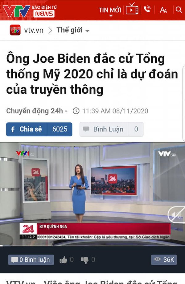 VTV đã thông báo lại ông Joe Biden đắc cử tổng thống Mỹ 2020 chỉ là dự đoán của giới truyền thông.